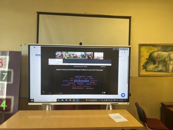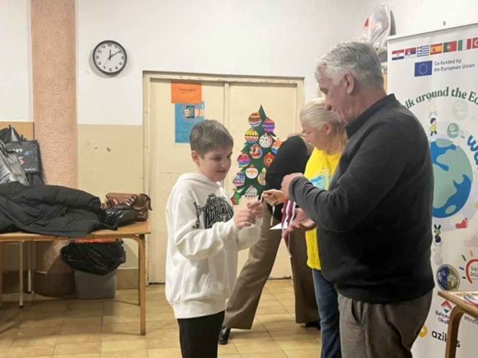 Дана 15. децембра 2025., у оквиру пројекта „Шетња око земље“, одржана је радионица на тему европских вредности. Реализатор и модератор радионице била је основна школа „45th Primary School“ из Грчке, а „место“ састанка била је Zoom платформа. Другари из грчке школе су представили шест основних вредности које су означене као основа европског друштва: поштовање људског достојанства, слобода, демократија, равноправност, владавина закона и поштовање људских права. Кроз низ кратких, интерактивних активности, деца су упозната са наведеним правима. Комуникативни аспект ове радионице био је веома занимљив ученицима јер су имали прилике да уживо виде и на енглеском језику комуницирају са другарима из других земаља. Наша школа је имала задатак да визуелно представи и објасни вредност „људско достојанство“, што су веома достојанствено урадили Максим и Игњат, ученици четвртог разреда.