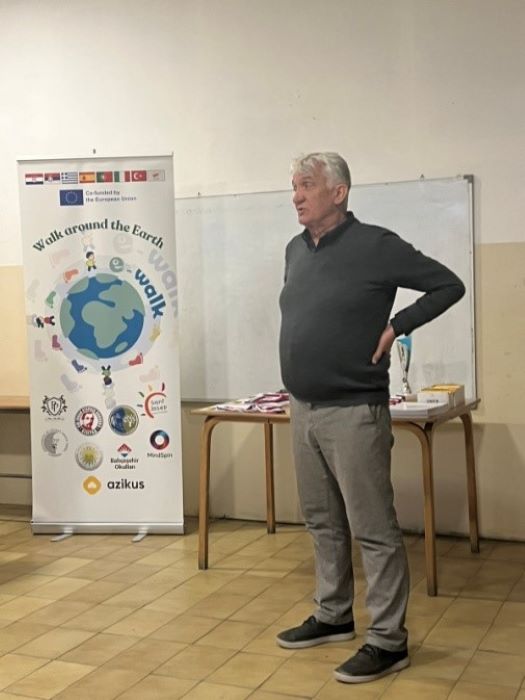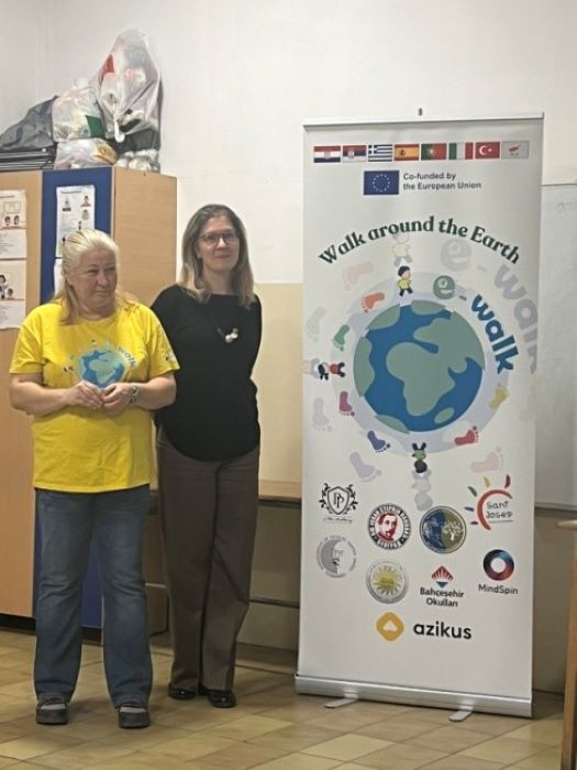 Са поносом представљамо шести Еразмус плус пројекат школе, а први из области спорта, под називом “Walk Around the Earth”, односно „Шетња око земље“. Идејни креатор и координатор је ОШ „Петра Прерадовића“ из Загреба. У пројекту учествује још и осам партнера, а то су основне школе из Грчке, Турске, Португалије, Шпаније и Србије, универзитет из Италије, агенција за Еразмус пројекте са Кипра и програмерска компанија из Загреба задужена за развој мобилне апликације. Апликација, која се истиче као најупечатљивији део пројекта, ће пратити кретање корисника кроз креирање и реализовање изазова, како индивидуалних, тако и тимских. Осим тога, садржаће и едукативне садржаје, попут занимљивих текстова из историје, географије, биологије и спорта. Пројекат је настао као продужетак школске иницијативе наставника физичког васпитања Јураја Хоржића, чији мотив је био да, у време короне, подстакне своје ученике да буду физички активни. Из ове првобитне иницијативе развио се међународни пројекат у оквиру Еразмус+ Спорт позива. Пројекат ће, у току свог трогодишњег трајања, имати шест великих изазова који ће бити везани за велике спортске или друштвене манифестације, историјске догађаје и географске тачке. Кретање, истраживање, дружење и заједништво су основне смернице пројекта, а крајњи циљ је да подстакне што више ученика, наставника и родитеља на кретање и учење уз кретање. Промовишући ходање и покрет као забаву желимо да укажемо на ову лаку алтернативу данашњем „седећем“ начину живота.
